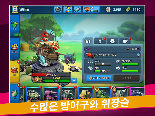 🦊 탱크와 동물을 업그레이드해서 더 강력한 무기와 방어구를 얻으세요.