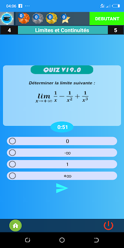 Quiz Maths TS는 과학 터미널 클래스의 학생들에게 수학에서 지식을 더 잘 회복하고 테스트하기 위해 수학 퀴즈 게임을 제공합니다. BR> 수업에 의해.