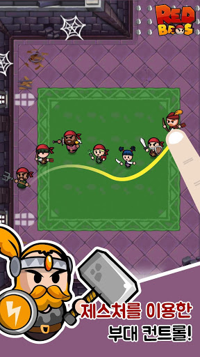 ‘레드브로즈’는 제스쳐를 이용한 새로운 조작방식의 퍼즐 어드벤처 게임입니다. 자동전투로 손놓고 방치하던 게임에서 벗어나 당신의 손가락으로 직접 용병단을 지휘해보세요. 그들은 명령을 기꺼이 따를 것입니다. 마탑에 들어가 적들에게 붙잡힌 용병들을 감옥에서 구출해내고 그들과 함께 마왕을 무찔러주세요!