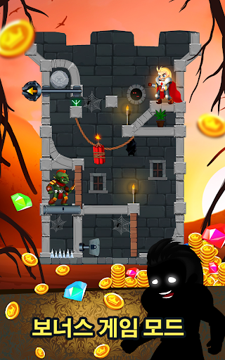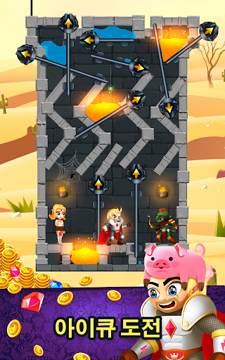 🤯 환상적인 퍼즐을 풀면서 용감한 기사가 보물을 모두 손에 넣을 수 있도록 도와야 합니다. 핀을 옮기고, 펄펄 끓는 용암과 독가스를 적 퍼즐 부대에 부어 적을 처리합니다. 밧줄을 자르면 무시무시한 오크로부터 공주를 구하게 되지요.