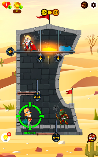 광고에서 호기심을 자극하는 퍼즐 게임을 보았지만, 막상 클릭했을 때 전혀 다른 게임이 나오는 것에 지치셨나요? 그렇다면 Rescue Knight를 만나보세요! 두뇌 회전력이 높은 플레이어를 위한 진정한 퍼즐입니다!