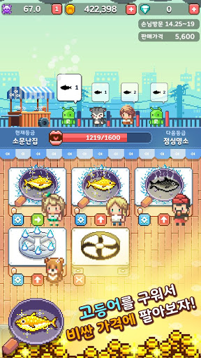 특수 효과를 가지고 있는 생선들을 탐색하고 특별한 가게 스킨을 통해서 자신만의 멋진 가게를 만들어보세요. 그리고 가장 중요한 것! 우수한 직원들! 봉급은 다소 높지만 놀라운 능력치를 지닌 직원들을 획득하면 우주 최강! 세계 최강의 고등어 구이 가게를 운영할 수 있답니다!!