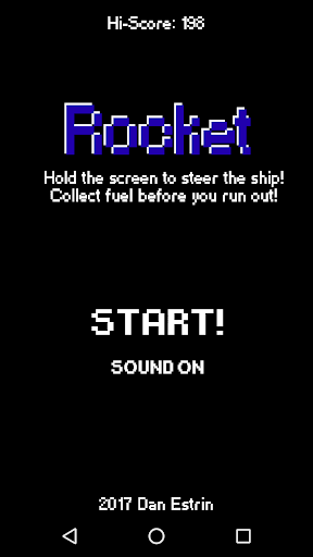 Rocket is a fast paced, score-based arcade game, paying homage to the classic titles of Snake and Asteroids. Test your reflexes as you try to collect each fuel powerup before your meter hits 0! The game features simple one-touch controls, retro sounds, polished graphics, and classic arcade difficulty - all for hours of addicting, time-killing fun. Challenge your friends and get the highest score!