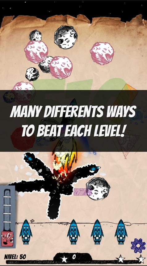 The combination of rockets and different firing sequences and angles makes each level compatible with many solutions. Find your own way to reach the stars!