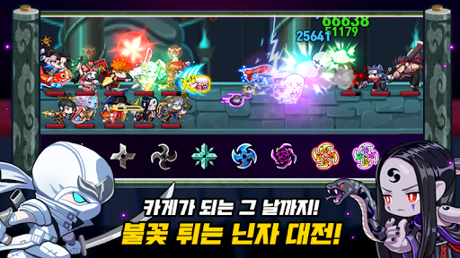 던전에서 장비를 획득하여 닌자 부대를 성장시키세요.