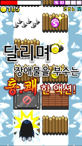 화면 좌, 우를 터치하며 장애물은 부수고 함정은 피해야 합니다.
