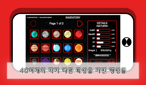 그것들을 원하는 대로 스텟(순간속력,최대속력,골결정력,슈팅파워,중력파워)을 배분하여 여러분들만의 장점을 살린 행성으로 만들어보세요.