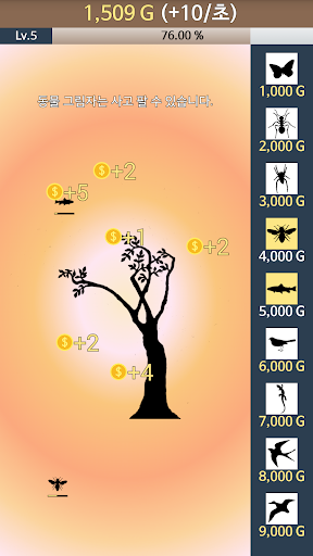 나무 그림자에서 떨어지는 돈을 모아 다양한 동물 그림자를 살 수도 있습니다. 아무것도 안 해도 동물 그림자는 일정한 시간마다 돈을 주는 고마운 존재입니다. 동물 그림자를 많이 모으면 모을수록 자동으로 증가하는 돈의 액수가 늘어납니다. 동물 그림자가 많아지면 나무 그림자를 클릭하지 않아도 돈이 늘어나는 재미를 느낄 수가 있습니다. 나무 그림자 키우기 뿐만 아니라 동물 그림자 키우기에도 도전해 보세요.