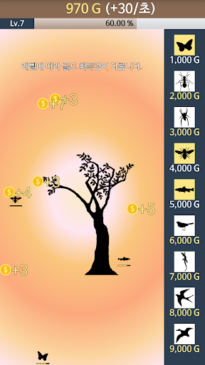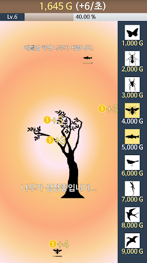 7. 레벨이 높아져서 나뭇가지가 무성해질수록 얻을 수 있는 돈의 양이 늘어납니다.