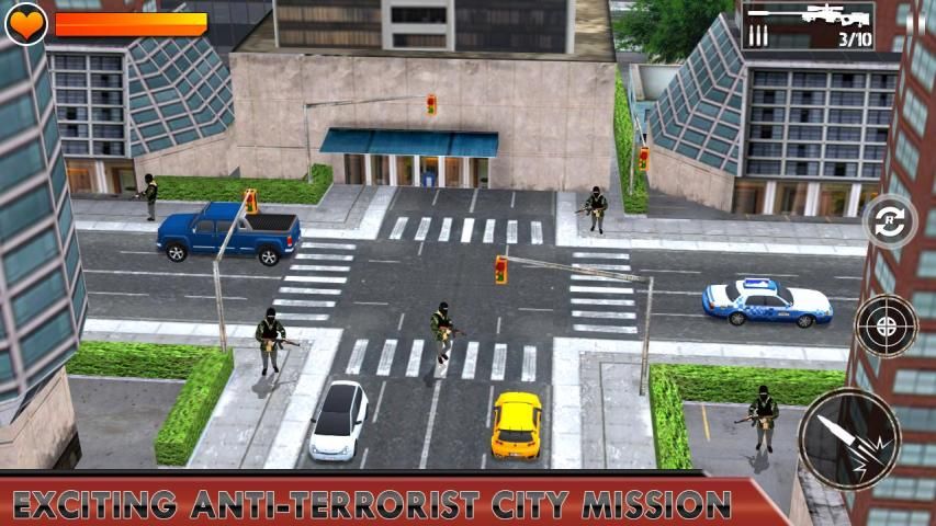 This is a great shooting like a zombie’s war or army forces. Tuning optimized high quality graphics brings you an insane feeling of city street shooting experience. Play on your style and enter on the grand city and destroy the all enemies. Sniper, take your deadly weapons! Let's fight the enemies back to hell! Survive or die, you are the last hope of the city! the most thrilling experience of combat missions throughout the streets ofcity. Your task is to fight against terrorists bases and destroy the city terrorist remnants, to effectively terrorist activities. You’re brave sniper performing missions in different areas locations around the city facing real enemies. Shoot and destroy the terrorist on your deadly rifles. Eliminate terrorists, criminals, and terrorist.