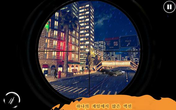 이 저격 3D에서 당신은 살인자이며 무고한 민간인을 살해하는 도시의 암살자를 줄이기 위해 도전하는 헌터 킬러입니다. 당신의 직업은 그 적을 없애고 민간인을 보호하는 것입니다. 날카로운 사격 기술.
