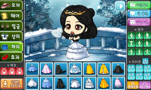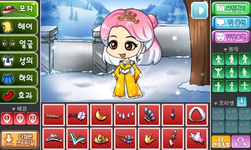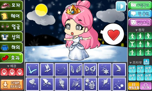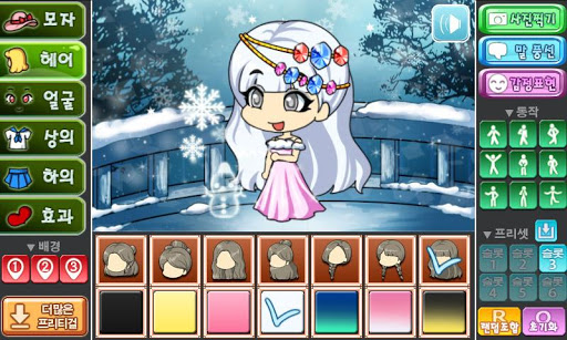 배경을 바꿀수 있고, 9가지의 포즈와 모션이 제공되며,