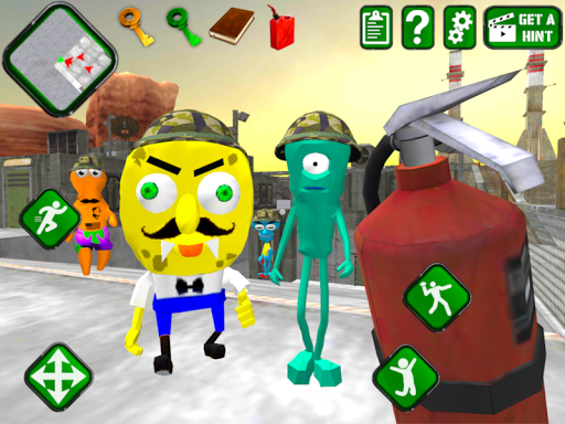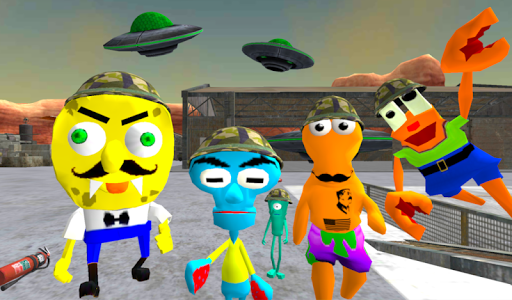 이 게임은 10 개 언어를 지원합니다!거대한 군사 기지에서, 당신은 그곳에서 5 명의 무서운 스폰지 친구들이 걷는 것을 보았습니다.당신은 그들에게 인사했고 그들은 당신을 쫓기 시작했습니다!이 이상한 지역을 조사해야합니다.