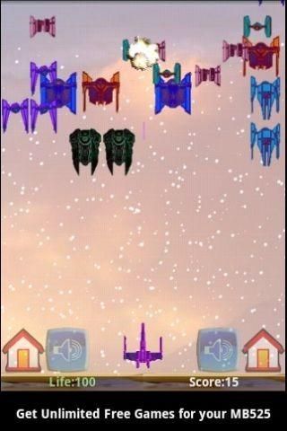 Touch to fire, tilt your device at left, right, up and down to move you fighter. If you is touched by the enemy ship, your life point will be decreased. Once it's smaller than 0, the game will be over and you lose the game. You can keep shooting the ships to earn the scores until you don't want to continue. When the game is over, the final score will be displayed. The top score also will display for your reference.