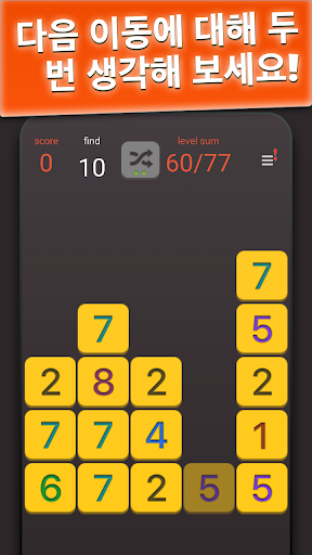팁: 필드에서 최대한 많은 숫자를 제거하면, 레벨을 완료할 수 있는 가능성이 커집니다.