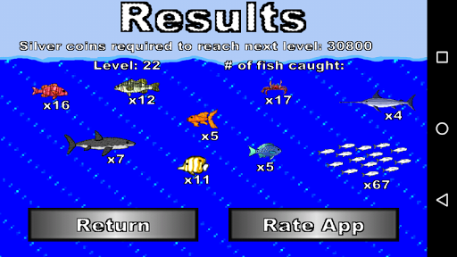 슈퍼 피셔 - 릴 릴을 터치하여 물고기 주위에 원을 통과하여 실버를 얻을 수 있습니다.실버를 사용하여 추가 배송, 더 많은 낚시 라인, 크랩 탐지기 및 그물과 같은 업그레이드를 구매하십시오.각 캐치는 더 많은 은색으로 도박을하는 데 사용할 수있는 진주를 떨어 뜨릴 기회가 있습니다.각각의 물고기를 많이 잡고 더 많은 은색을 잡아서 리더 보드를 더 많이 잡고 업적을 열어줍니다.희소 한 각 물고기의 황금 버전은 5 배 정상적인 가치가 있습니다.