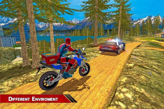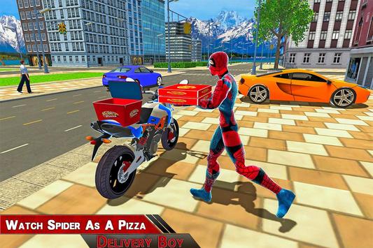 Incredible hero is doing role as pizza delivery boy with futuristic bike pizza driving simulator. Spider Pizza delivery games were never been such amazing. This is a new way of modern futuristic delivery of pizza with bike driving in which our delivery boy has to drive bike and deliver the pizza in limited time. Get ready to become a pizza man and run your own pizza shop and deliver pizza as well like a pizzeria boy. This super spider pizza game is made for those who want to become a delivery man. Deliver pizza in different areas of the city in given time. If pizza delivery boy fails to reach the destination within the limited time the level will be failed in Super Spider Hero Pizza Delivery.