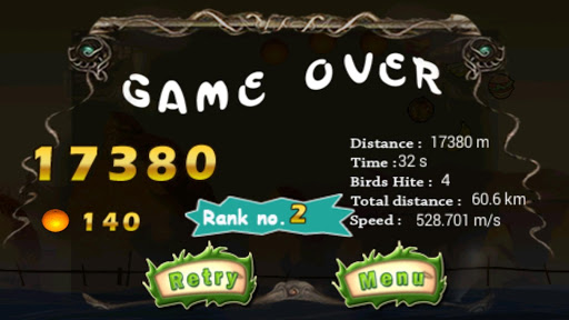 더 큰 도약을위한 망토를 수집하는 것을 잊지 마십시오. 그리고 터보 스피드를 얻기 위해 비행 새를 명중했다.