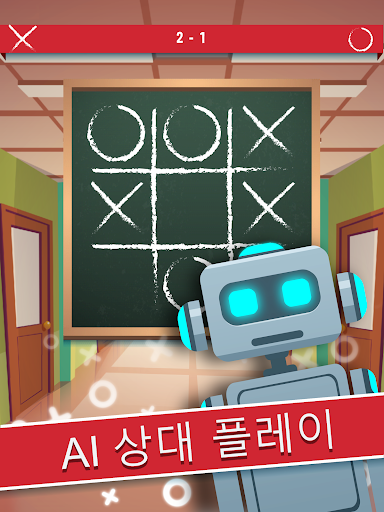 Tic Tac Toe 퍼즐은 또한 Tic Tac Toe, 3목두기, X & O로도 알려져 있습니다. Tic Tac Toe 무료 앱에서는 AI를 상대하거나 친구와 함께할 수 있습니다. 3x3 격자 공간에 한 명은 X를, 다른 한 명은 O를 돌아가며 표시하며 플레이하게 됩니다. 3개의 표시를 수평, 수직 또는 대각선으로 일렬로 놓는 사람이 승자가 됩니다. 다음 게임에서는 이전 게임의 승자가 먼저 시작하게 됩니다. 아무도 이기지 않은 경우 무승부가 됩니다.