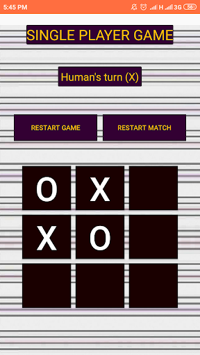 Tic Tac Toe is supports Single player and double player, you can play with your android device or against human.