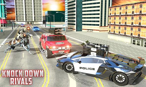 Police automobile robot has been developed for chasing and defeating war robots and it is all about power, transformation, destruction, racing and police robot dog survival in intense situation.