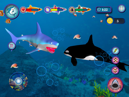 깊은 바다로 다이빙을하고 살인자 고래로 바다를 지배하십시오! 처음으로, 산호초에서 음식을 사냥하기 위해 다른 야생 상어가 고래 세계에서 야생 상어의 가족을 키우는 것입니다.