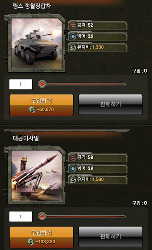 •병력, 전투장비, 항공기로 나뉘어진 120여개의 전투아이템