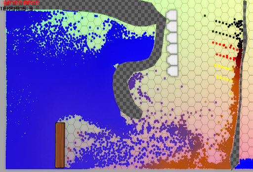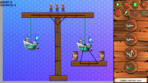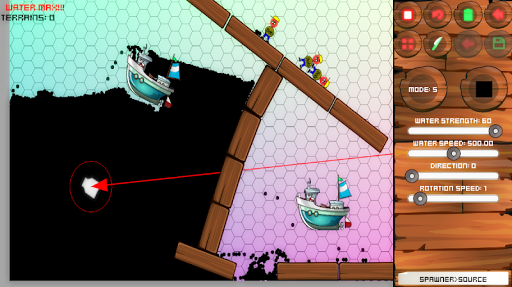 The game realisticly simulates water particles and how they react with a huge amount of elements like boxes, circles, boats, bombs, own crafted elements or terrain.