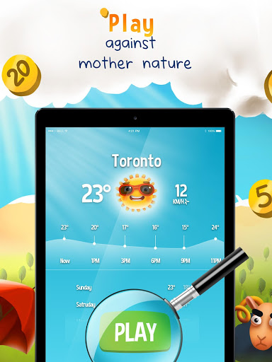 이 재미있는 날씨 게임은 전 세계의 친구, 플레이어와 심지어 실제 삶의 날씨 발표자에게 경쟁 할 수 있습니다! 그러나 그것은 모두가 아닙니다 - 또한 날씨 라이브를 확인하고 재생하는 미니 게임을 즐길 수 있습니다! 날씨 도전은 그것을 다음 단계로 가져옵니다!