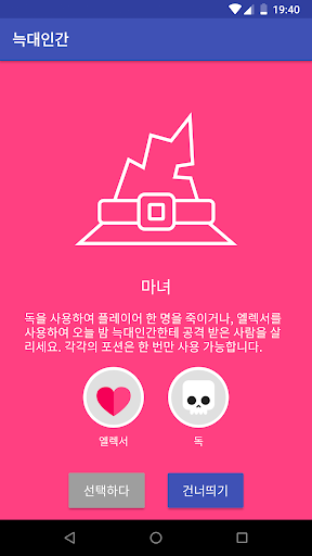 당신이 'Werewolf'를 하고 싶지만, (마피아 게임이라고도 합니다) 카드가 없고, 연필을 들고 그리기도 싫어면, 이 앱을 쓰세요. 단순히 몇 명이 할지 정하고, 어떤 직업들을 선택할지 정하면 (예. 늑대인간을 몇 명 있게 할까 등) 준비 끝입니다. 그 다음은 당신의 핸드폰을 돌리면서, 각 플레이어들이 각자의 직업을 보게 하세요. 30개 이상의 직업이 있습니다!