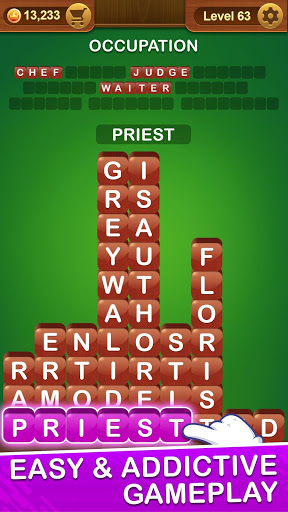 단어 탑에서 문자 블록을 스 와이프하여 의미있는 단어를 형성하십시오.