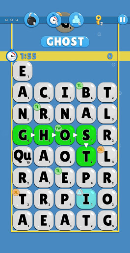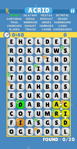 가상 활성화 빠르게 대각선을 포함한 모든 방향으로 문자를 연결하여 단어 철자를 고정 문자 타일 검색으로 당신의 두뇌. 동일한 문자 타일은 단어 당 한 번만 사용할 수 있지만 현재 터치하고있는 타일의 직접 이웃을 연결하기 위해 드래그 할 때 방향을 변경할 수 있습니다.