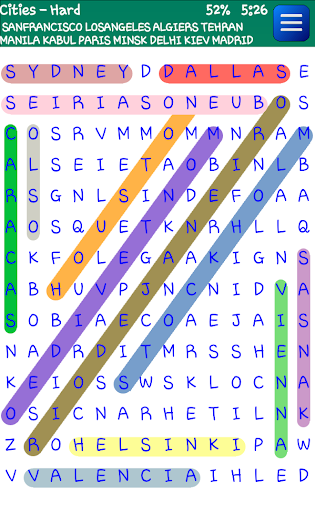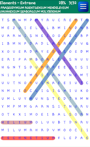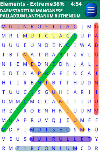 Wordsearch에는 다섯 가지 난이도가 있습니다 (쉽고, 중간, 하드, 극단적 인, 진보적이며, 극단적으로 쉽고 진행됨).