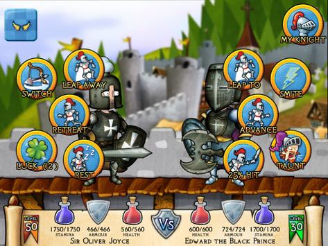 * Build up your knight through 50 character levels and learn powerful abilities like 'Cleave' and 'Smite'