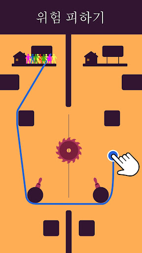 이 위험한 계곡의 출발점에서 기다리고 있는 친구들을 구하기 위해, 손가락으로 라인을 그리고 다른 집에 도착한 후 화면을 탭하여 사람들이 집라인을 계속 탈 수 있도록 하세요. 화면에서 손가락을 오래 누를수록 더 많은 사람들이 집라인을 탈 수 있습니다. 위험을 피하기 위해, 블록 주변에 라인을 그릴 수 있으며 라인을 로프처럼 움직일 수 있습니다.