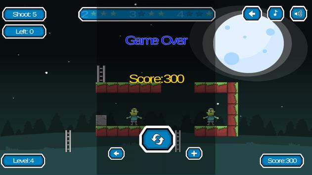 Each level of the game will have a few shots, if you use all shoots without killing all zombies then the game ends. Zombie Shooting have 21 levels challenge your skill.