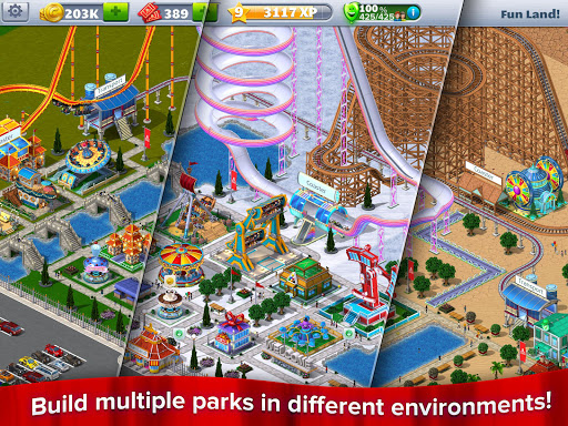 • 나만의 테마 놀이공원을 다른 놀이시설, 식당, 사업체들, 스낵카트, 호텔 및 장식등으로 고유화 하십시오