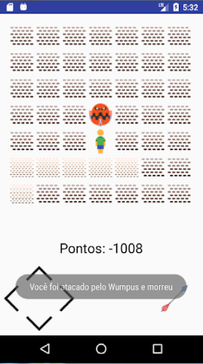 Você é um caçador de tesouros e seu objetivo é achar o tesouro escondido no mapa. Mas você tem obstáculos como buracos e o monstro (wumpus). Você pode matar o Wumpus jogando uma flecha, mas não a desperdice, você só tem uma por jogo.