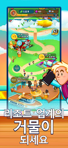 화면을 누르기만 하면 간단히 당신만의 리조트 제국 건설이 시작됩니다. 우아하게 요트를 탄 손님들이 나타나면, 화면을 눌러 정상을 향해 달려가세요!