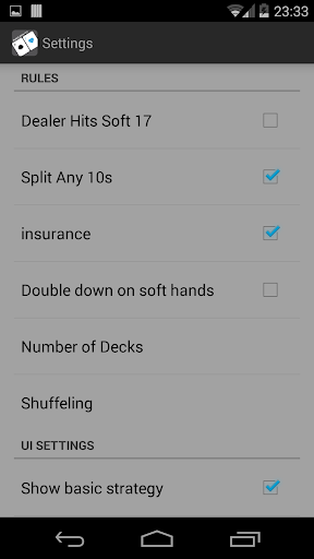 - basic strategy teaching, this app will recommend you the mathematically best move