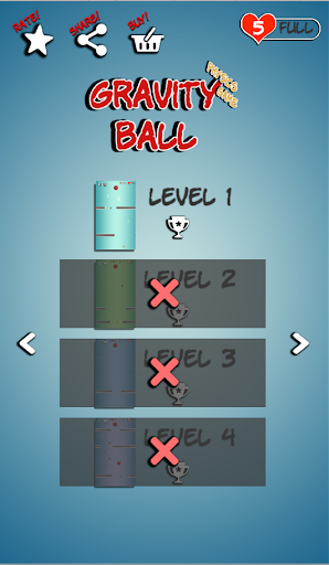- 조심하십시오!공이 어떤 장애물을 만지거나 화면을 벗어나게하십시오.각 레벨의 끝까지 공.