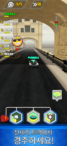 당신이 이겨야 할 상대들로 가득 찬 긴 순위 리스트가 있습니다. 일일 미션을수행하고, 보상과 상자를 모으고, 새 차를 구입 및 업그레이드하고, 부스터를 사용해서 경쟁자들을 물리치세요. 토너먼트에서 우승하고 보스를 물리침으로써 랭킹 1위에 올라 세계 최고의 레이서가 되세요!
