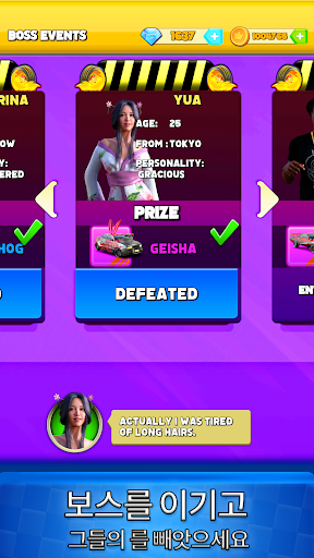 뉴욕에서 모스크바까지, 도쿄에서 런던까지 수십 명의 보스들이 그들의 지역에서 당신을 기다리고 있습니다. 유아는 기술 천재이고 베이비 빌은 스트리머입니다. 당신은 이 터프한 상대들을 이길 수 있나요? 상대를 차례로 물리치고, 그들의 차를 빼앗고, 컬렉션을 확장하여 더 많은 보스에게 도전하세요. 당신이 데려가기를 모든 차들이 기다리고 있습니다.