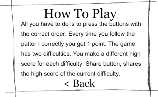 The game has two difficulties, easy and hard. On each difficulty a different score is saved.