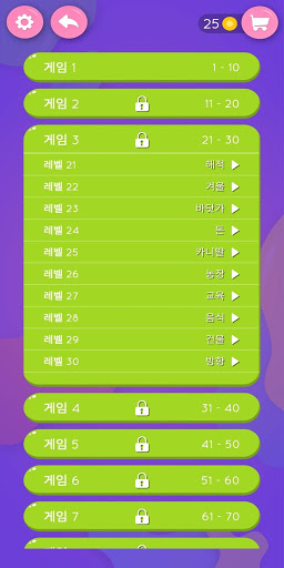 - 어휘력을 늘리고 다음 레벨로 넘어가기 위해서 모든 단어를 찾아야만 합니다.