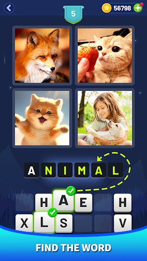 무엇을 기다리고 있습니까?친구들에게 4 장의 사진 1 워드 퍼즐 게임을 연주하도록 초대하고, 누가 그림에 숨겨진 단어를 추측하고, 레벨을 빠르게 전달하고, 보상을받을 수 있는지 확인하십시오!
