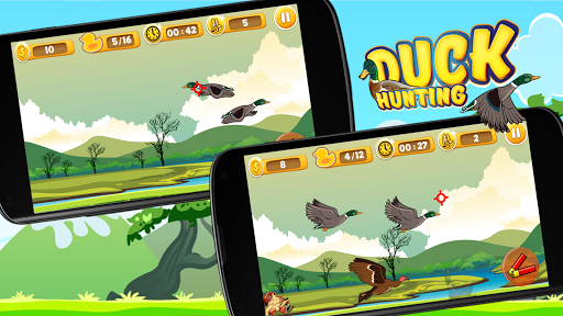 당신이 할 수있는 한 많은 오리를 사냥해서 게임 레벨을 올리거나 오리를 놓치지 않고 오리를 잡으려고하지 않고 가장 높은 점수를 얻으십시오.
