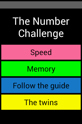 What is “The Number Challenge”? It’s a fascinating and addicting game that is all about numbers! 4 different modes will challenge you on different levels! Train your brain and have fun at the same time!!!