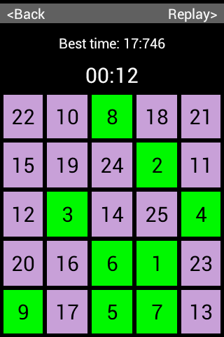 Tap the numbers in ascending order, as fast as you can! Beat your own record again and again, until your fingers burn! This game will train your vision and your speed! Challenge and train your brain through 4 levels of difficulty!