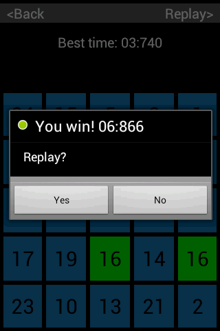 The game tells you what number to tap in the grid, until there is no number left. Do it as fast as you can and beat your own record! Challenge and train your brain through 4 levels of difficulty!